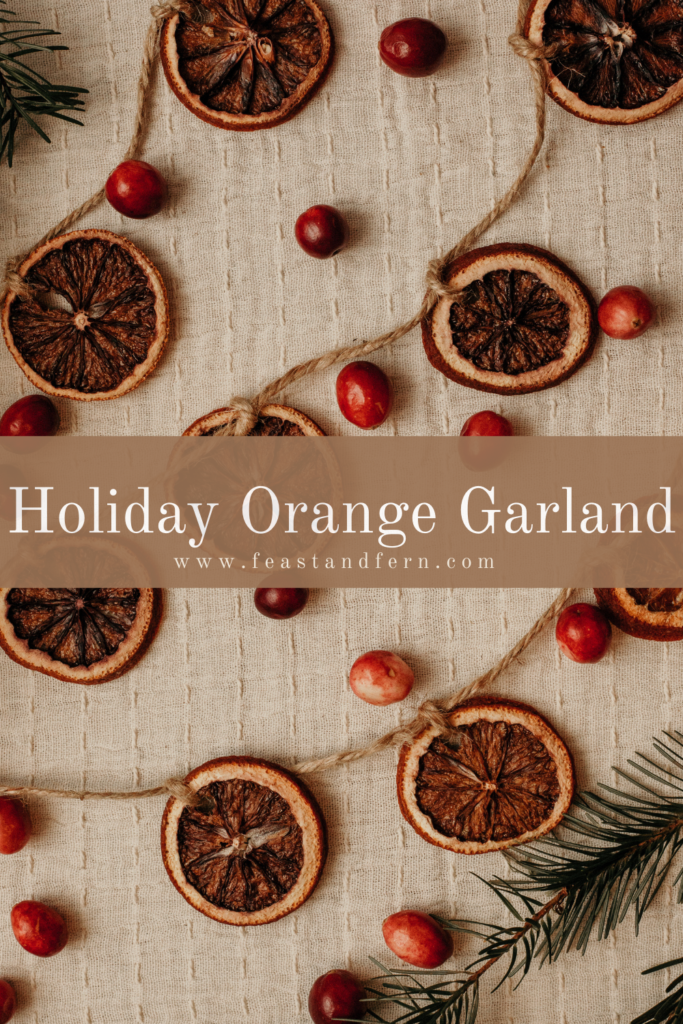 Every time the holidays come around in our household there is a longing for cozy and warm evenings inside sipping a cup of hot tea and making a craft that will add to the comfort of the holiday season. An easy & cozy DIY holiday dried orange garland is a great way to add a touch of holiday cheer this year! Through the hustle and bustle of moving and having most of our decor packed away in boxes across town, I have opted for simpler holiday decor. This means easy and cozy crafts that maybe take an hour or two and help me focus on the joy of the season. They don’t cost much and they add that little element of holiday cheer around our home.